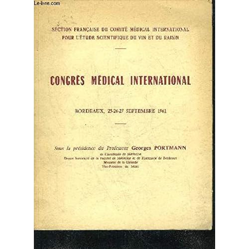 CONGRES MEDICAL INTERNATIONAL BORDEAUX 25-26-27 SEPTEMBRE 1961 - SECTION FRANCAISE DU COMITE MEDICAL INTERNATIONAL POUR L'ETUDE SCIENTIFIQUE DU VIN ET DU RAISIN. Details