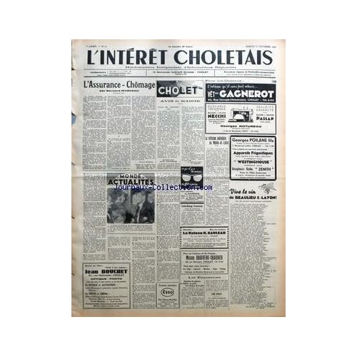 L'ASSURANCE - CHOMAGE PAR BERNARD MANCEAU - MONDE ACTUALITES - CHOLET - AVIS DE MAIRIE - POLICE DES CIMETIERES - REVISION DES LISTES ELECTORALES PAR G PRISSET - CROIX-ROUGE FRANCAISE - LA REFORME JUDICIAIRE EN MAINE-ET-LOIRE - LES EXPOSITIONS - EXPOSITIONS DE PEINTURE AU THEATRE AU PROFIT DES VICTIMES DE LA POLIO - LES BALS - LE SAINT-SYLVESTRE - VIVE LE VIN DE BEAULIEU-S-LAYON PAR A COUCHOT DES FORGES